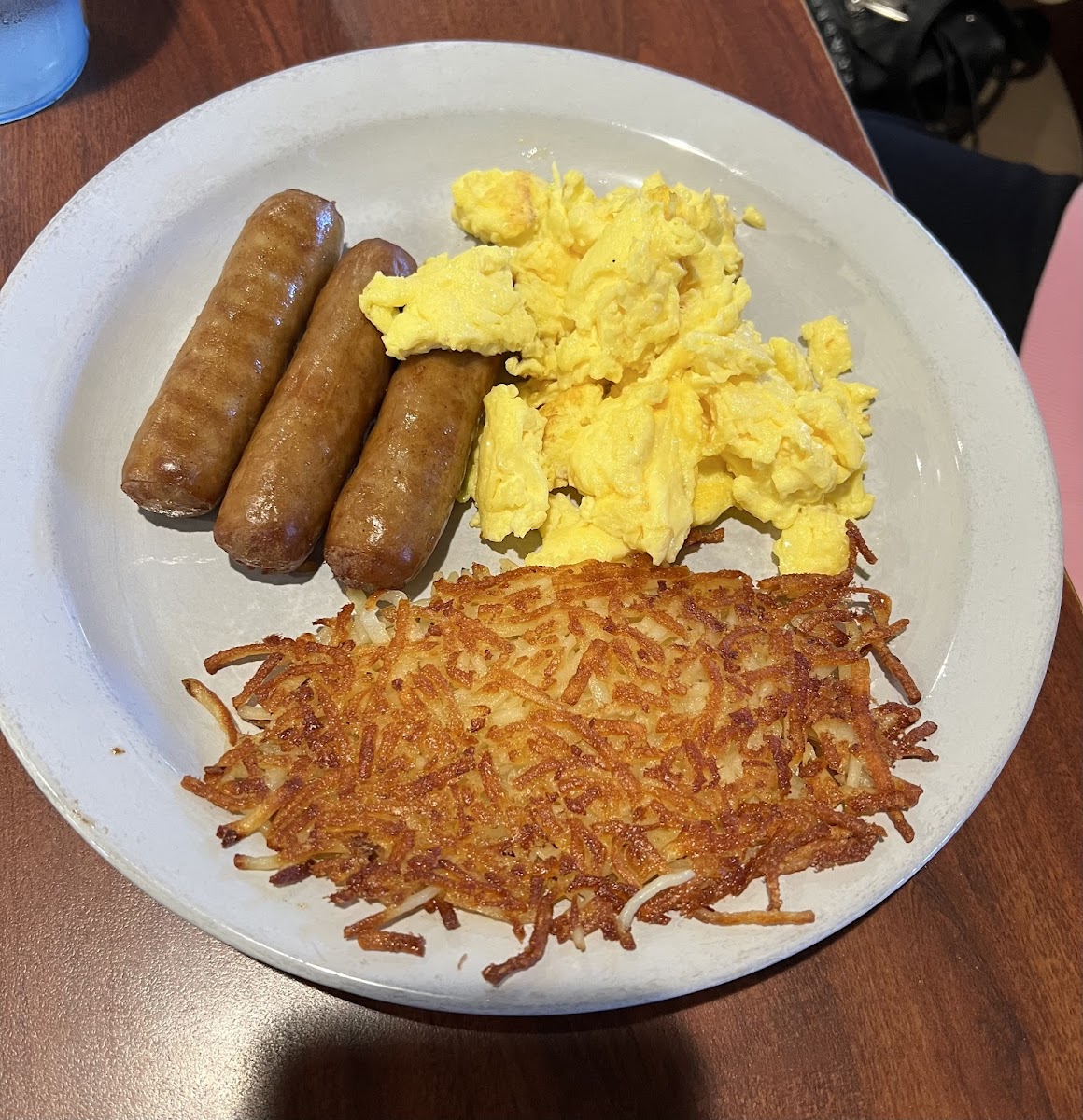 If you're in the mood for something classic, the Eggs Benedict delivers with its traditional mix of poached eggs and ham on a toasted English muffin, also finished with hollandaise sauce. It'll take you straight to brunch paradise. And for those who prefer a sweet start to their day, the Stack of Pancakes or the indulgent Cinnamon Roll French Toast offer heavenly delights, with the latter showcasing pecans for a delightful crunch.